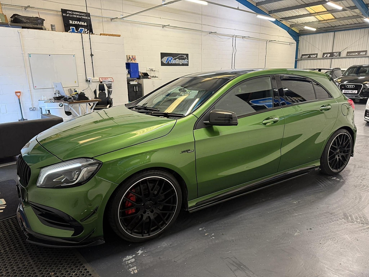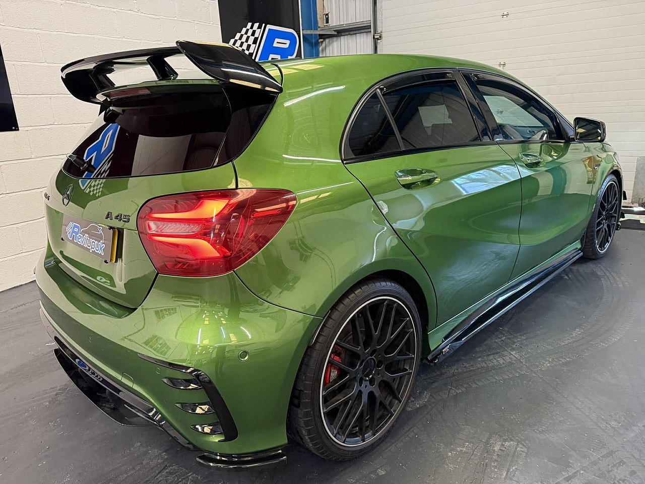 What a colour combination 😮‍🔥 Elbaite Green is one of the most sought-after A45 colours and really sets this car apart. A very popular model and this one drives absolutely superb — sharp, responsive and seriously quick with its 380BHP output.